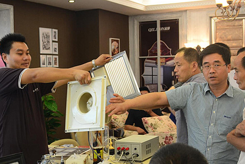 公司代表特為遠道而來的業主朋友們悉心解讀產品,助他們更快地選擇心儀產品。公司代表對幾款奇力電器、板材進行現場剖析與檢驗,讓現場所有人嘆服奇力“質美雙全”的品質與保障。