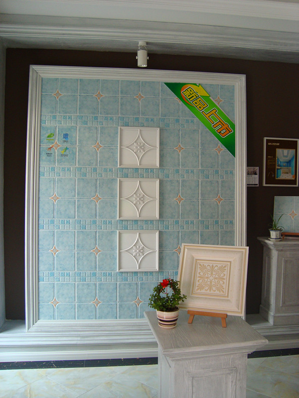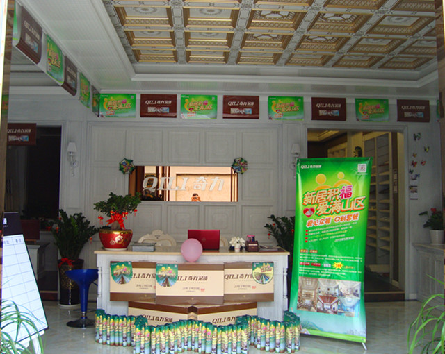 在公司市場部和銷售部的通力合作下,針對常山當地實際情況的活動方案新鮮出爐,除了“0利套餐”之外,常山經銷商在活動宣傳上更是不余遺力,在門店布置上,重點突出與“新居積福,愛滿山區”相關的活動物料,并精心與門店產品陳列、軟裝布置相匹配。顯眼的X展架,花藝折疊的海報,精美的禮品堆疊整齊。藍白相間的樣板墻,馬賽克的裝飾,讓你置身于藍色海洋,心情瞬間就海闊天空。其次是銷售冠軍的樣板,金色與白色組合,簡歐風格淡淡的奢華氣息,讓你徜徉在神秘古堡。