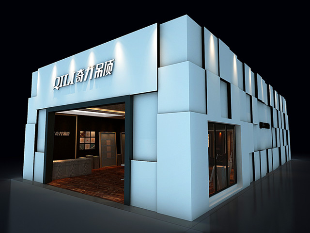 奇力展館外觀像是幾個重疊著的、錯落著白色魔方,層次感、立體感瞬間顯現,在外立面奢華大行其道的吊頂展館中脫穎而出。秉著“大力出奇跡”的設計理念,幾何工業美學,是奇力參展的第一大利器。