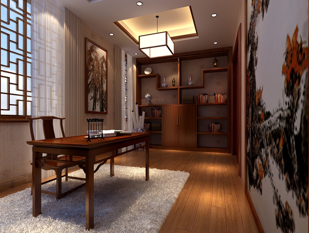 中式風(fēng)格的書房,符合典雅、樸實(shí)、具有傳統(tǒng)意義上的“書齋”的韻味?!八故锹遥ㄎ岐?dú)馨”就是中式風(fēng)格書房的完美演繹。紅色仿木紋樣式的吊頂,置入中式家具,加上中式書柜、茶幾及屏風(fēng),配以中國字畫和古玩等點(diǎn)綴其間,就構(gòu)成一幅中式風(fēng)格的書房藍(lán)圖。進(jìn)入這個(gè)書房學(xué)習(xí),你是不是也會(huì)有種穿越的感覺。