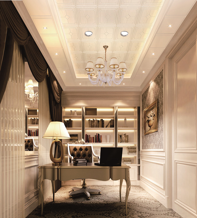歐式風(fēng)格的書房,在家具上的選擇一些具有“歐味”的書柜和工作臺,再配以西洋油畫、水彩畫和雕塑等也能增強(qiáng)歐陸風(fēng)情,如女體像柱、繪畫雕塑、裝飾假面以及圓形或橢圓形雕飾等圖案。在這樣的書房辦公,會(huì)不會(huì)事半功倍呢?