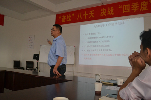 會上,營銷總監對營銷部第三季度整體情況作總結報告:首先肯定了銷售人員第三季度終端所取得的銷售成績;更對剩下的80天的第四季度重點開展的工作計劃做了詳細的方向性指導。最后作出全面系統的指示,號召全體奇力同仁進一步明確了第四季度工作任務與重心;更鼓舞了全體營銷人員沖擊第四季度終端市場的作戰士氣。