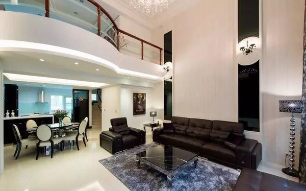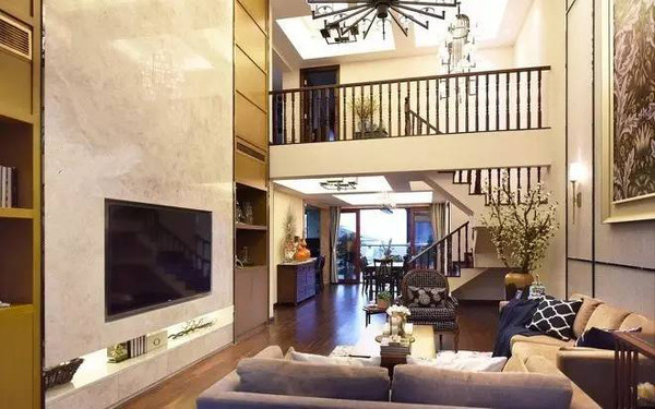 ③除此之外,挑空型客廳里的裝飾和配飾也是非常重要的一點了,可以嘗試在墻壁上掛上符合整體風格的掛畫,或者是根據設計師的建議安裝幾盞造型獨特的壁燈,這些裝飾一烘托,整個客廳就更加大氣了。